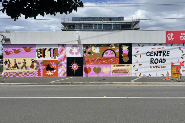Thematically, Lynn’s selection of client work and public art all carries through her notable passion for spreading messages of inclusivity, fun, and kindness that transform the everyday as each design is translated across screen, print, and wall. The elements of storytelling within her public works reflects the bright, diverse tapestry of the local communities and surrounding area, becoming visual icons of placemaking and cultural identity.